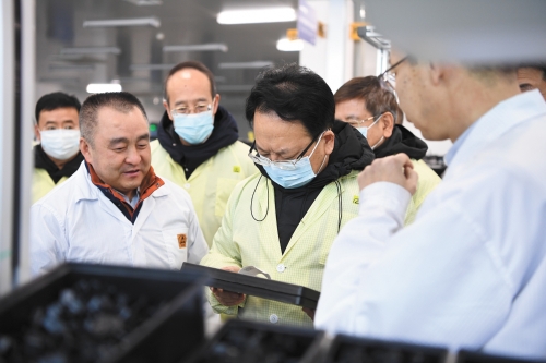 ?。保苍拢谷眨质∥瘯浘翱『5街袊鞴I(yè)集團東北工業(yè)集團有限公司,就深入貫徹黨的十九屆五中全會精神和習近平總書記視察吉林重要講話重要指示精神,全面落實省委十一屆八次全會精神,推動企業(yè)創(chuàng)新發(fā)展等情況進行調研。吉林省委常委、副省長吳靖平,吉林省委常委、省委秘書長胡家福,吉林省委常委、長春市委書記王凱一同調研。  圖為景俊海等在東北工業(yè)集團生產現場調研
