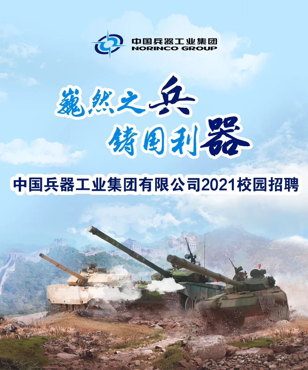 時(shí)間的軌道 承載著奮斗的汗水和腳印 十?dāng)?shù)年寒窗,半余生苦讀 即將告別象牙塔的你 是否已經(jīng)準(zhǔn)備好 在新的人生道路上揚(yáng)帆起航 我們懂你的赤子之心 我們將伴你共同成長 感受中國兵器的魅力 來兵器工業(yè),攜夢(mèng)想同行 中國兵器工業(yè)集團(tuán) 2021春季校園招聘 正式啟動(dòng)! 關(guān)于我們 中國兵器工業(yè)集團(tuán)有限公司 ◆是我軍機(jī)械化、信息化、智能化裝備發(fā)展的骨干 ◆是全軍毀傷打擊的核心支撐 ◆是現(xiàn)代化新型陸軍體系作戰(zhàn)能力科研制造的主體 ◆是國家“一帶一路”建設(shè)和軍民融合發(fā)展的主力 中國兵器工業(yè)集團(tuán)現(xiàn)有50余家子集團(tuán)和直管單位,分布在北京、陜西、內(nèi)蒙古等29個(gè)省、市、自治區(qū),在全球70余個(gè)國家和地區(qū)設(shè)立了100余家境外分子公司和代表處。集團(tuán)公司連續(xù)16個(gè)年度和5個(gè)任期蟬聯(lián)國務(wù)院國資委業(yè)績考核A級(jí),位列世界500強(qiáng)企業(yè)排名第154位。 揮別校園 人生的挑戰(zhàn)才剛剛開始 為你的未來 選擇一個(gè)廣闊的舞臺(tái) 加入兵器工業(yè),追尋人生理想 揮灑青春激情,共鑄強(qiáng)大國防 履行強(qiáng)軍首責(zé),推動(dòng)高質(zhì)量發(fā)展 中國兵器工業(yè)集團(tuán) 期待志同道合的你 |