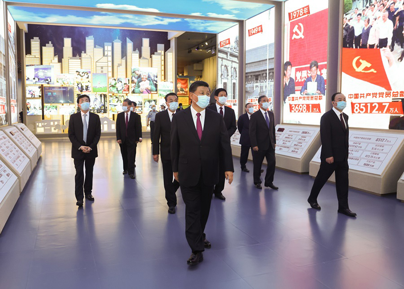 ■ 黨的歷史是最生動、最有說服力的教科書。我們黨的一百年,是矢志踐行初心使命的一百年,是篳路藍縷奠基立業(yè)的一百年,是創(chuàng)造輝煌開辟未來的一百年?;赝^往的奮斗路,眺望前方的奮進路,必須把黨的歷史學習好、總結(jié)好,把黨的寶貴經(jīng)驗傳承好、發(fā)揚好,銘記奮斗歷程,擔當歷史使命,從黨的奮斗歷史中汲取前進力量。要教育引導廣大黨員、干部通過參觀學習,更加自覺地不忘初心、牢記使命,增強“四個意識”,堅定“四個自信”,始終在思想上政治上行動上同黨中央保持高度一致,堅定理想信念,學好用好黨的創(chuàng)新理論,賡續(xù)紅色血脈,發(fā)揚光榮傳統(tǒng),發(fā)揮先鋒模范作用,團結(jié)帶領全國各族人民,更好立足新發(fā)展階段、貫徹新發(fā)展理念、構(gòu)建新發(fā)展格局,全面做好改革發(fā)展穩(wěn)定各項工作,匯聚起全面建設社會主義現(xiàn)代化國家、實現(xiàn)中華民族偉大復興中國夢的磅礴力量
