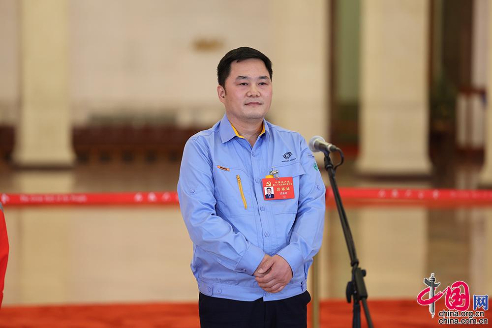 10月22日,二十大“黨代表通道”第二場(chǎng)采訪活動(dòng)在人民大會(huì)堂舉辦。圖為中國(guó)兵器西北工業(yè)集團(tuán)研究院試制分廠鉗工高級(jí)技師張新停。中國(guó)網(wǎng)記者 董寧 攝
