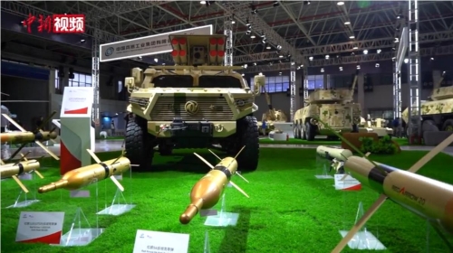 【解說】據介紹,中國兵器工業(yè)集團帶來的展品共計175款,其中52款為首次參展。在展館最顯眼處是一輛全新發(fā)布的升級款的VT4系列主戰(zhàn)坦克,它在態(tài)勢感知能力,有/無人協同作戰(zhàn)能力上有全面提升。