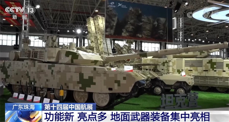 兵器工業(yè)集團(tuán)專家 程子恒:在最中心位展示的是我們VT4系列的重型主戰(zhàn)坦克,在旁邊我們還看到有一款輪式的無人車。我們的坦克是一個履帶式的,在一些特殊泥濘的環(huán)境,我們是靠履帶行進(jìn)的,但是我們會發(fā)現(xiàn)有一些需要高速行進(jìn)的場景,輪式有很強(qiáng)的機(jī)動性,那么用輪式的無人車高速到前端進(jìn)行偵查的任務(wù),做一個輪履的相互配合,相互互補(bǔ)。