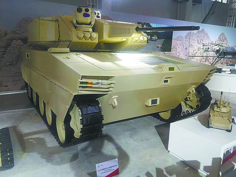 相比各種無(wú)人機(jī)和巡飛彈,珠海航展上的無(wú)人地面作戰(zhàn)車(chē)輛在作戰(zhàn)性能上也毫不遜色。除了VT-5U輕型坦克可以臨時(shí)客串“無(wú)人坦克”外,兵器工業(yè)集團(tuán)的VU-T10履帶式無(wú)人地面作戰(zhàn)平臺(tái)也堪稱(chēng)重型無(wú)人車(chē)輛。VU-T10主要針對(duì)城市環(huán)境作戰(zhàn),選擇采用厚重的履帶式底盤(pán),配備有30毫米口徑遙控武器站,未來(lái)還可以根據(jù)需要配備4枚“紅箭-12”反坦克導(dǎo)彈,加載7.62毫米機(jī)槍?zhuān)湮淦髋鋫涞呢S富程度相比俄羅斯BMPT“終結(jié)者”火力支援車(chē)也不遜色,卻沒(méi)有了后者在巷戰(zhàn)中可能遭遇人員傷亡的風(fēng)險(xiǎn)。