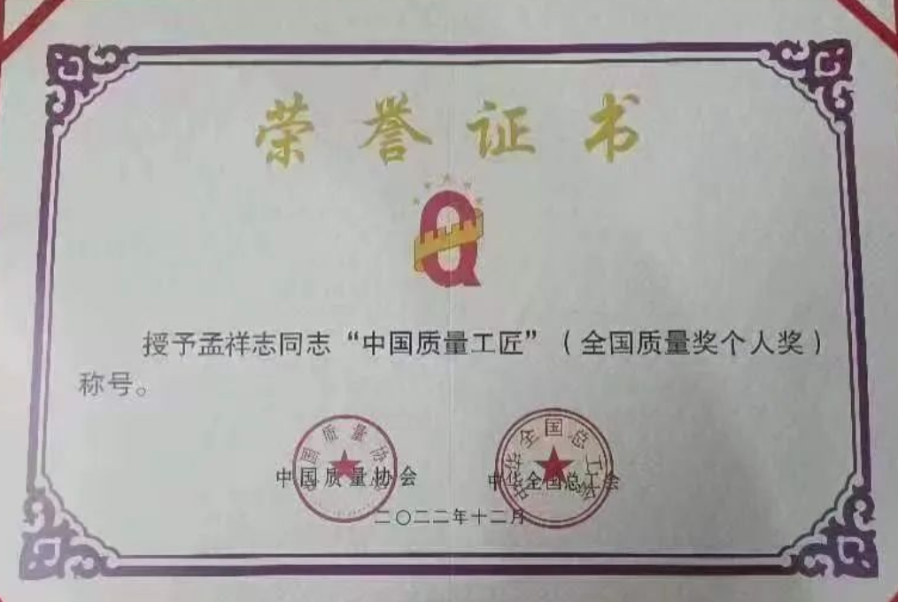 兵器工業(yè)集團(tuán)孟祥志榮獲“中國(guó)質(zhì)量工匠”稱(chēng)號(hào) |