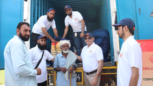 考慮到災(zāi)情期間交通不便,為了確保運(yùn)輸時(shí)效,項(xiàng)目組成立了由21人組成的運(yùn)輸保障志愿小分隊(duì)。9月6日,志愿小分隊(duì)連夜驅(qū)車400公里趕往災(zāi)區(qū),親手將救災(zāi)物品免費(fèi)發(fā)放到當(dāng)?shù)刎毨転?zāi)民眾手中,極大鼓舞了當(dāng)?shù)孛癖娍箵艉闉?zāi)的士氣?!盁o論遇到什么困難,中國(guó)總是第一個(gè)愿意幫助巴基斯坦的國(guó)家。感謝中國(guó)公司給予我們的支持與幫助,中巴友誼萬(wàn)歲!”當(dāng)?shù)鼐用窦娂姳硎靖兄x。